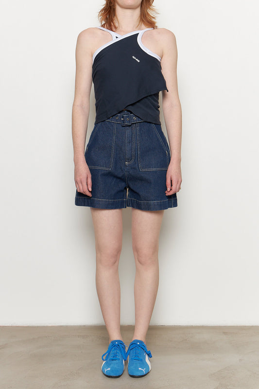 Indigo Denim Belt Shorts