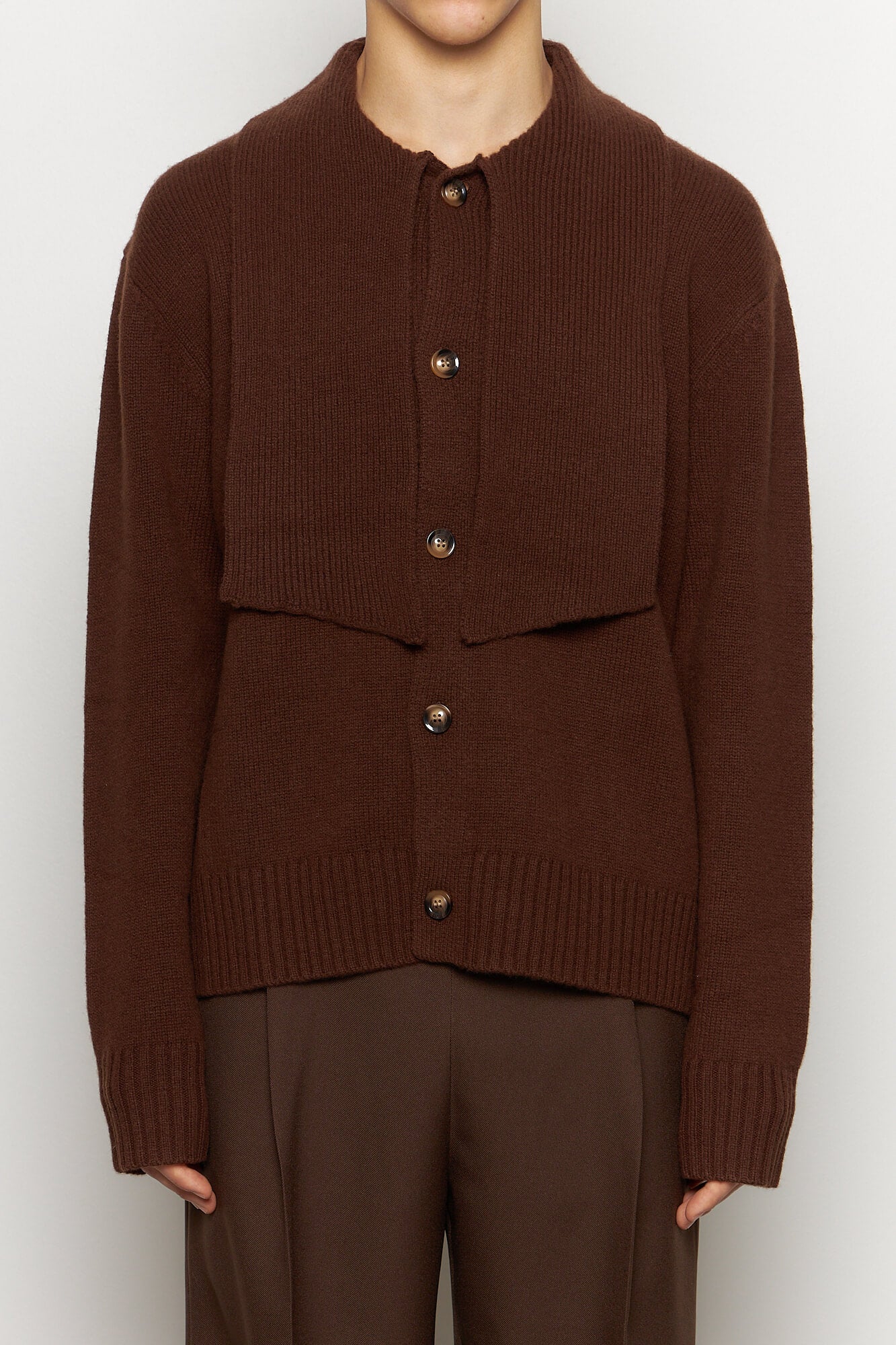 Regular-fit cardigan featuring an integrated scarf for versatile styling, wrap or knot it as you please. Knitted from soft Merino wool, it offers warmth, comfort, and an elevated layered silhouette.