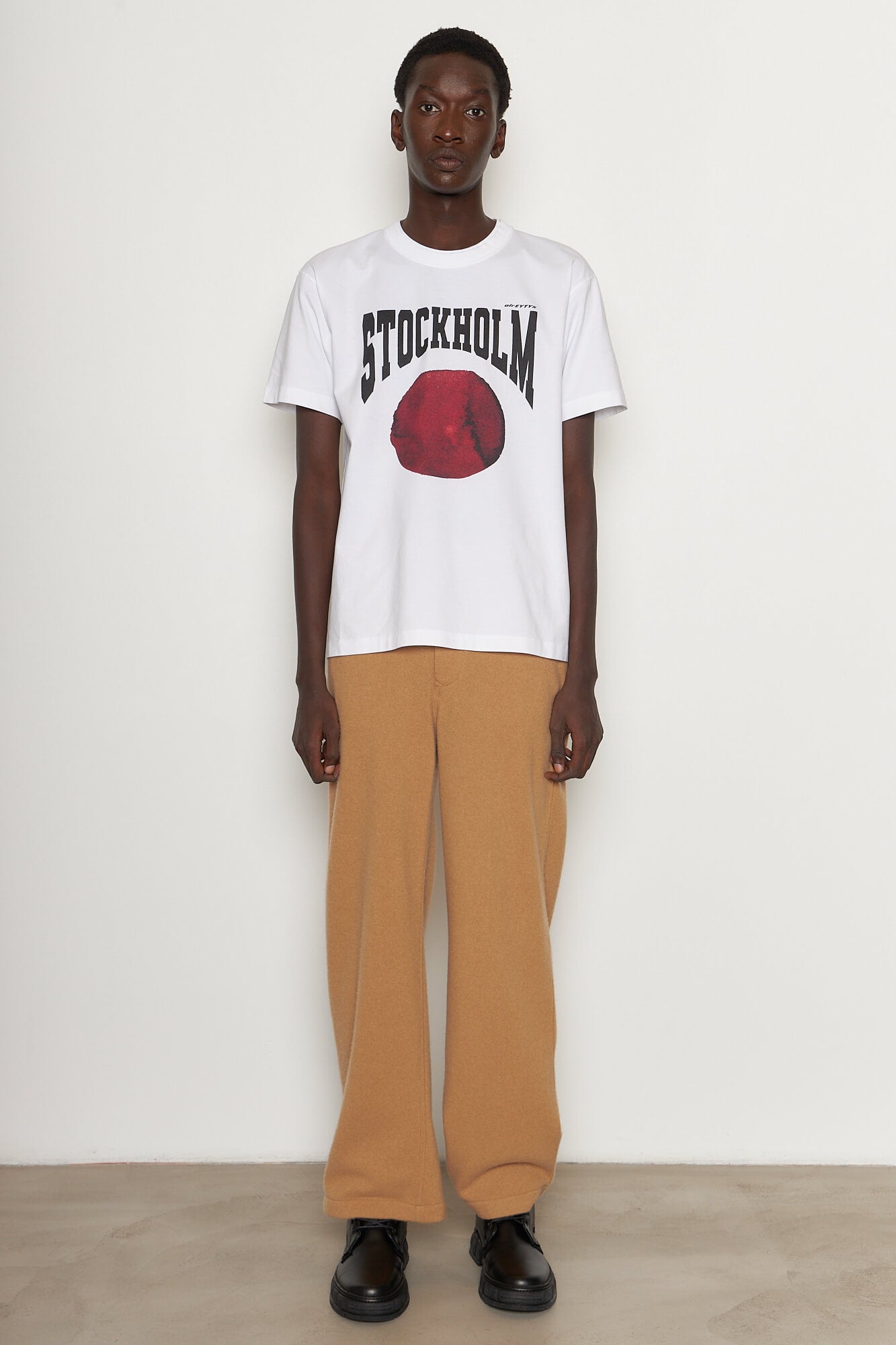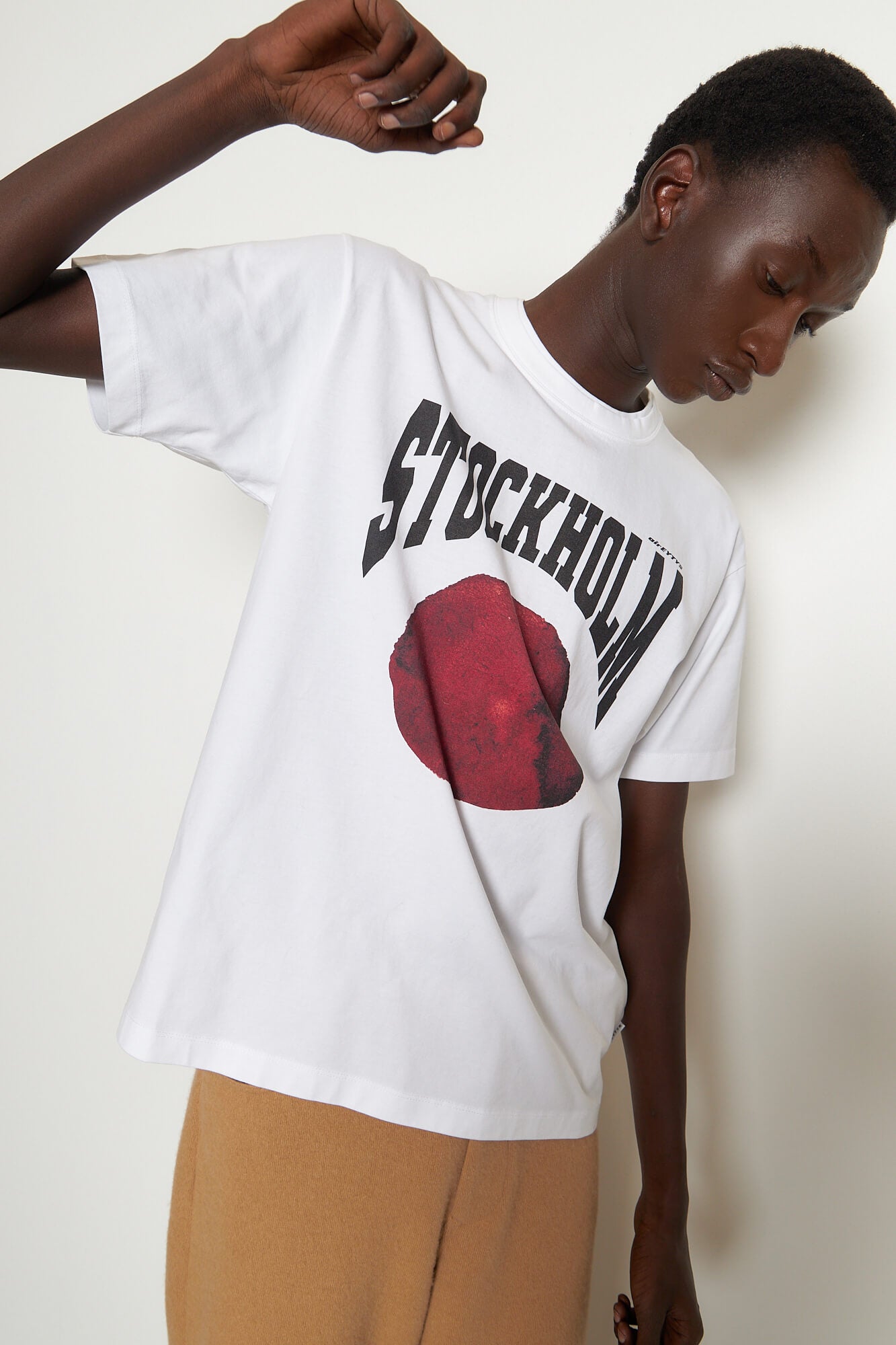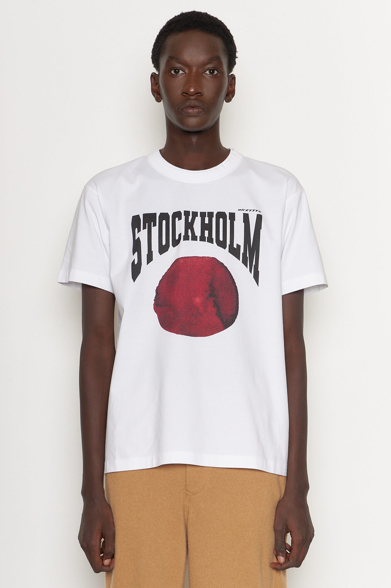 The 'Leon' Stockholm T-Shirt in white is crafted from soft, durable medium-weight cotton jersey. Detailed with a double collar rib and seasonal screen-printed Stockholm artwork.
