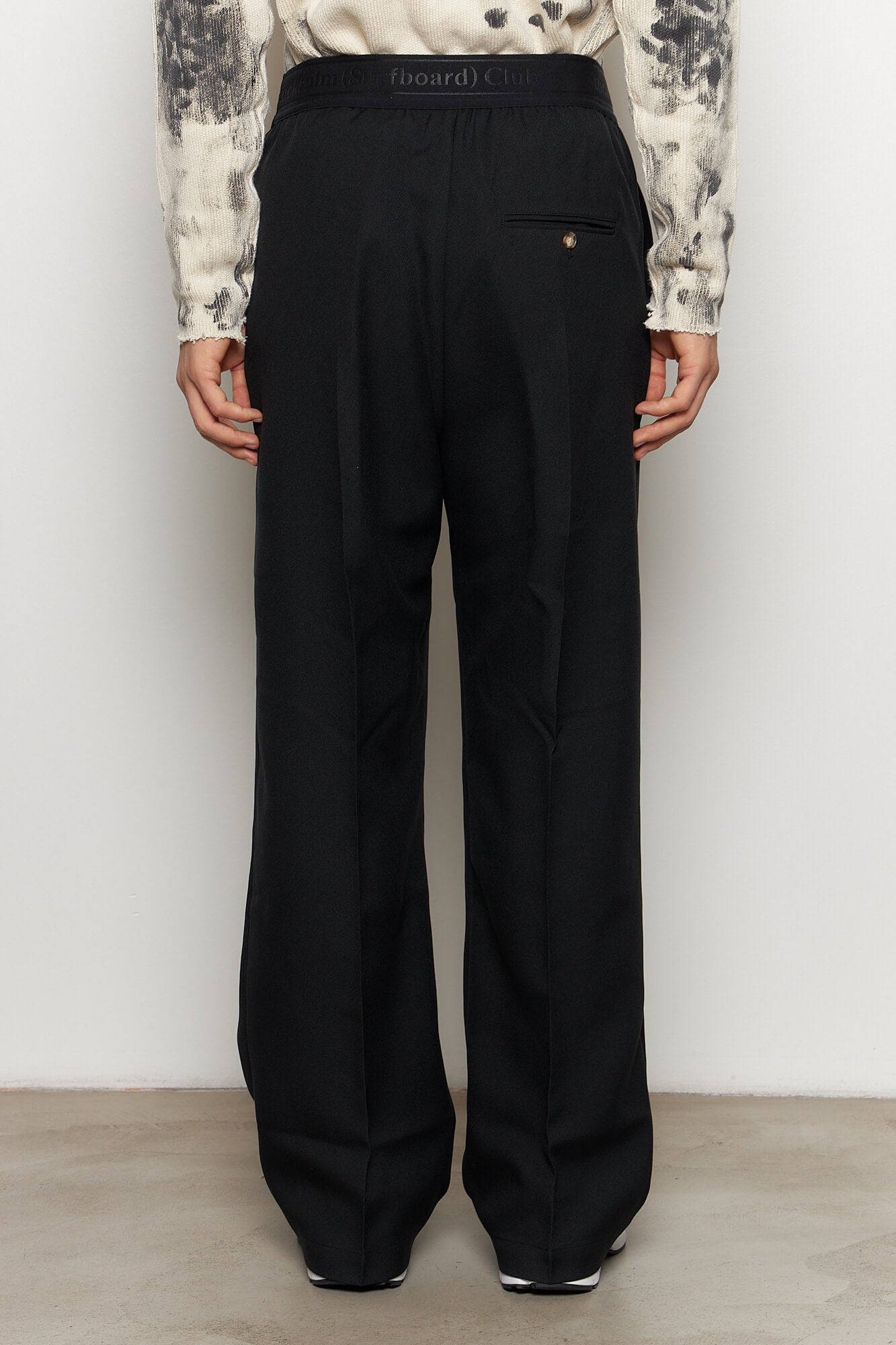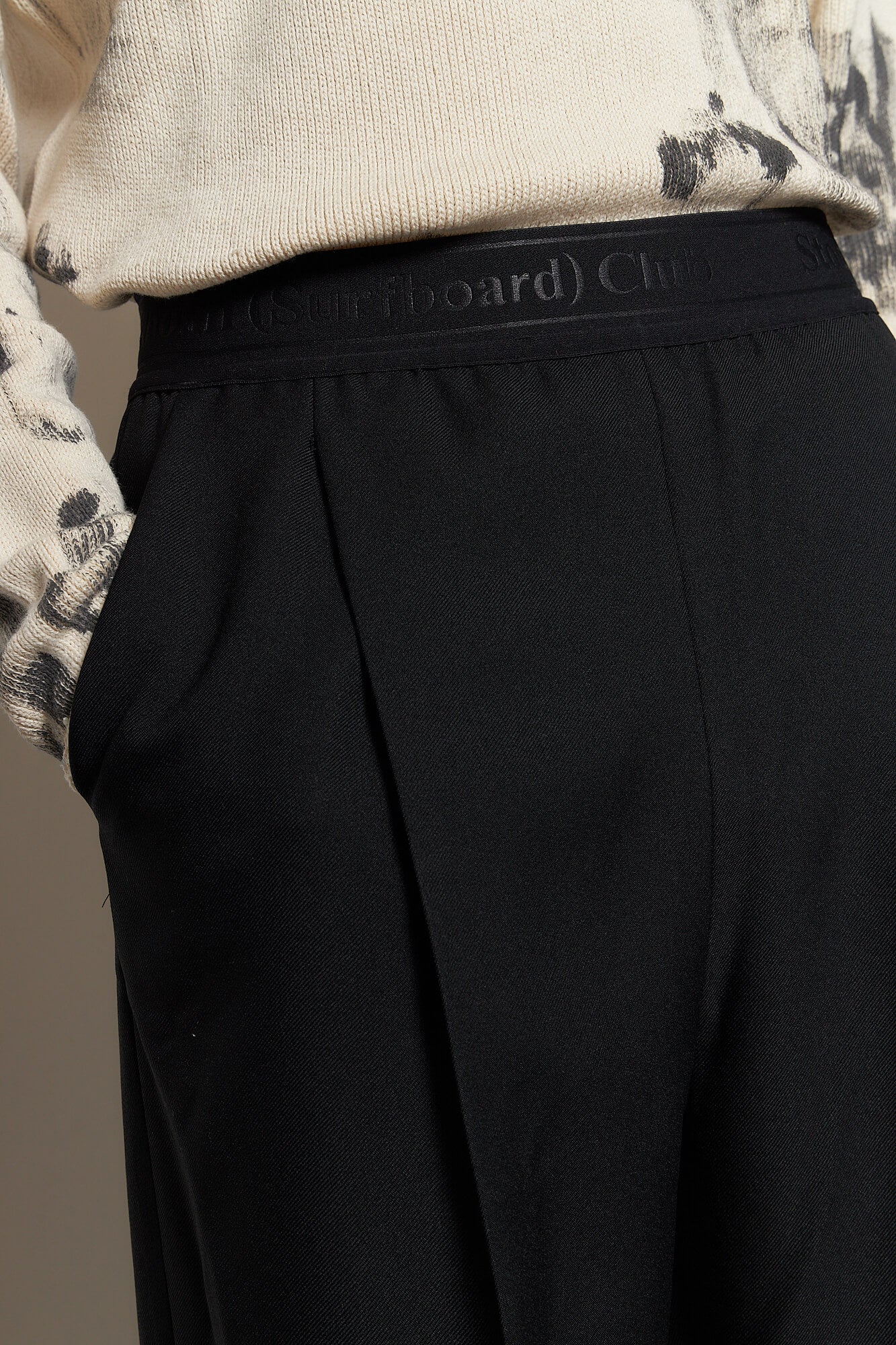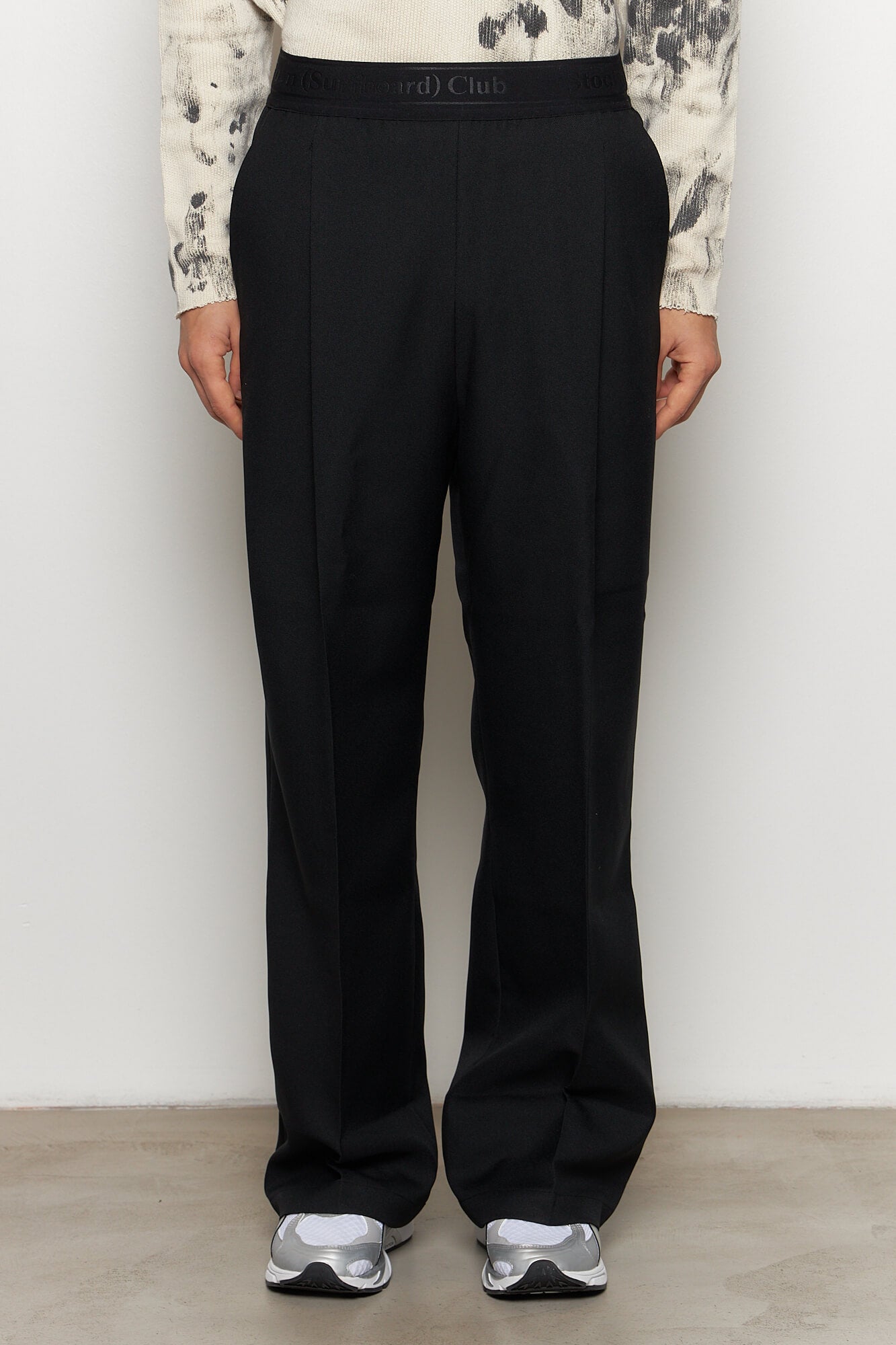 Stockholm Surfboard Club loose fit trousers with elastic waistband, slant pockets and press folds.